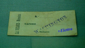 Talloncino di imbarco emesso dalla compagnia di navigazione La Veloce-Messina per il vapore Waschington
